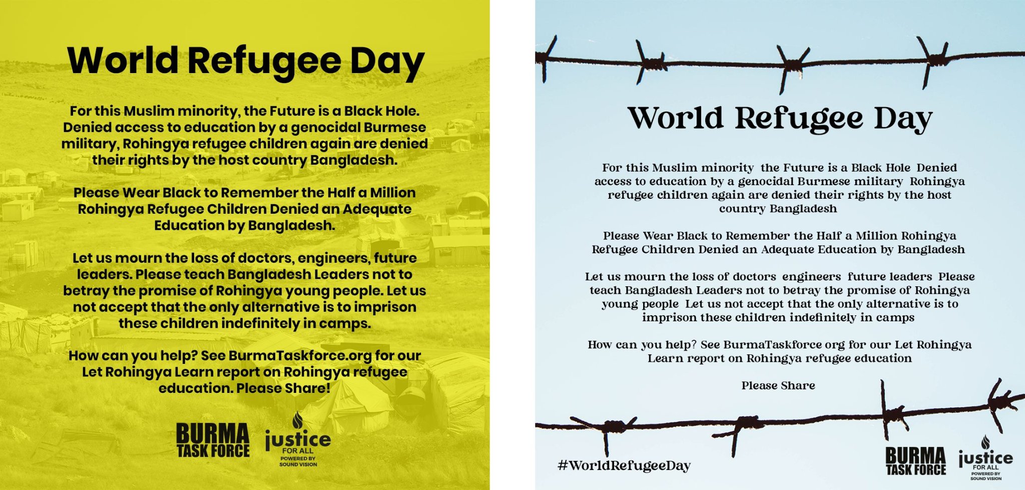 Burma Task Force (BTF) is a coalition of 38 US and Canadian Muslim organizations, including our parent organization, Justice For All, a 501(c)(3) nonprofit, dedicated to advocating for the Rohingya and ending the genocide in Burma.
